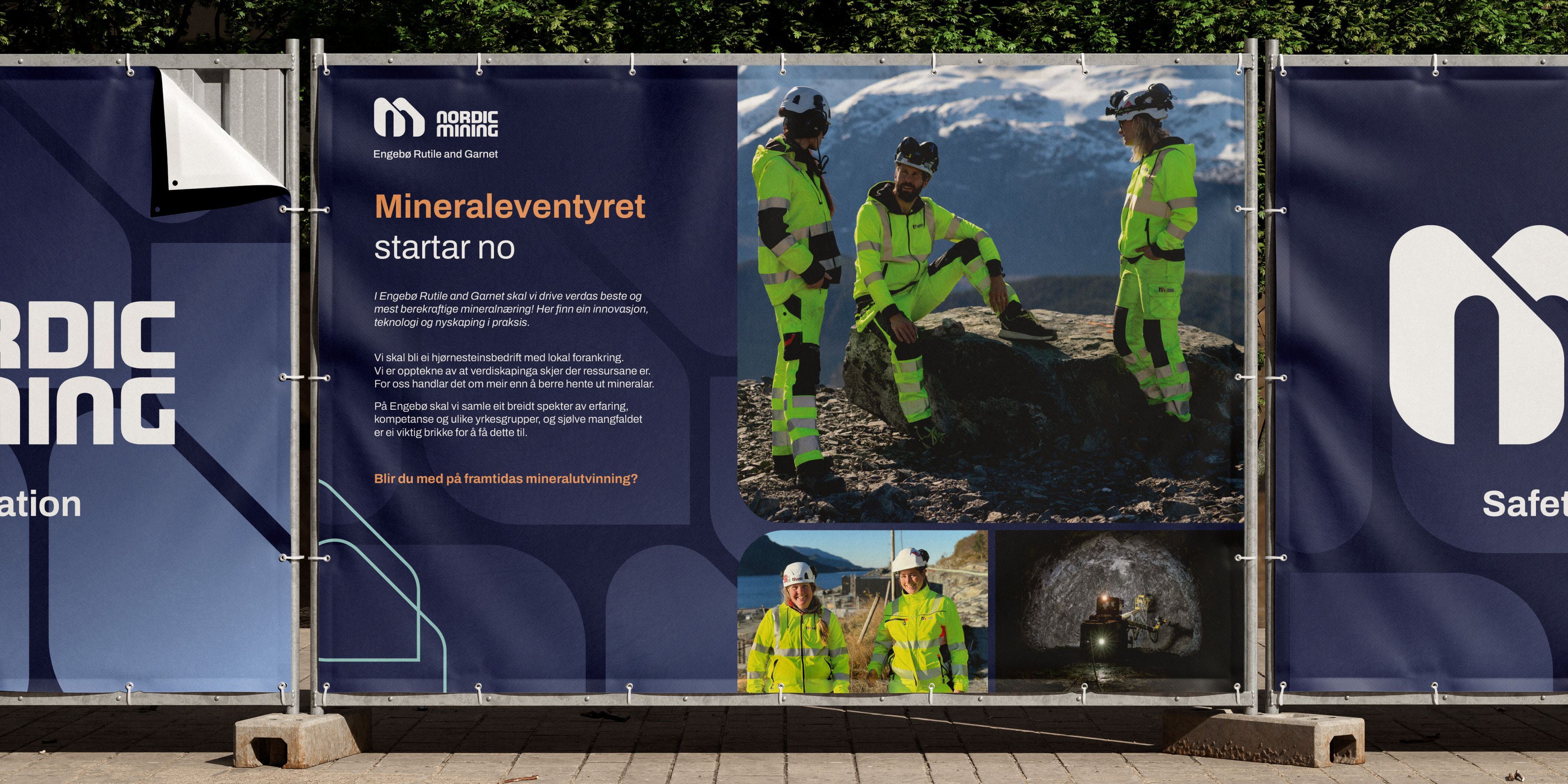 Mykje research og innsikt ligg bak den nye identiteten, som har blomstra ut til mellom anna ny og spennande fargepalett, designelement, mønster og font. Fem kjerneord blei kartlagt, og danna grunnlaget for det vidare arbeidet med profilen. Nordic Mining er både innovative, seriøse, berekraftige, stødige og opne – og den nye profilen måtte identifiserast med desse kjerneorda. Gjennom gode visuelle verkemiddel har vår designer Ann-Sofi laga ein profil som selskapet kan kjenne seg igjen i, og bruke på mange forskjellige måtar.