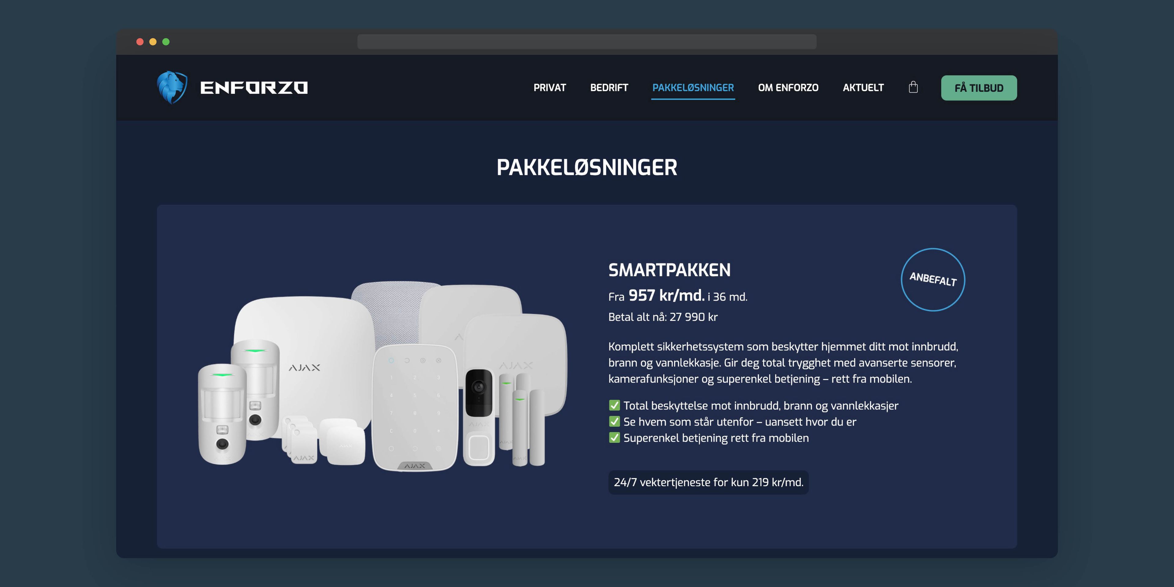 Då David Nilsen skulle starte heilt nytt vektarfirma i Førde trengte han ein nettstad. Selskapet hans Enforzo er ein totaltilbyder av alarm- og vektertenester, både til privatpersonar og til bedriftsmarknaden.