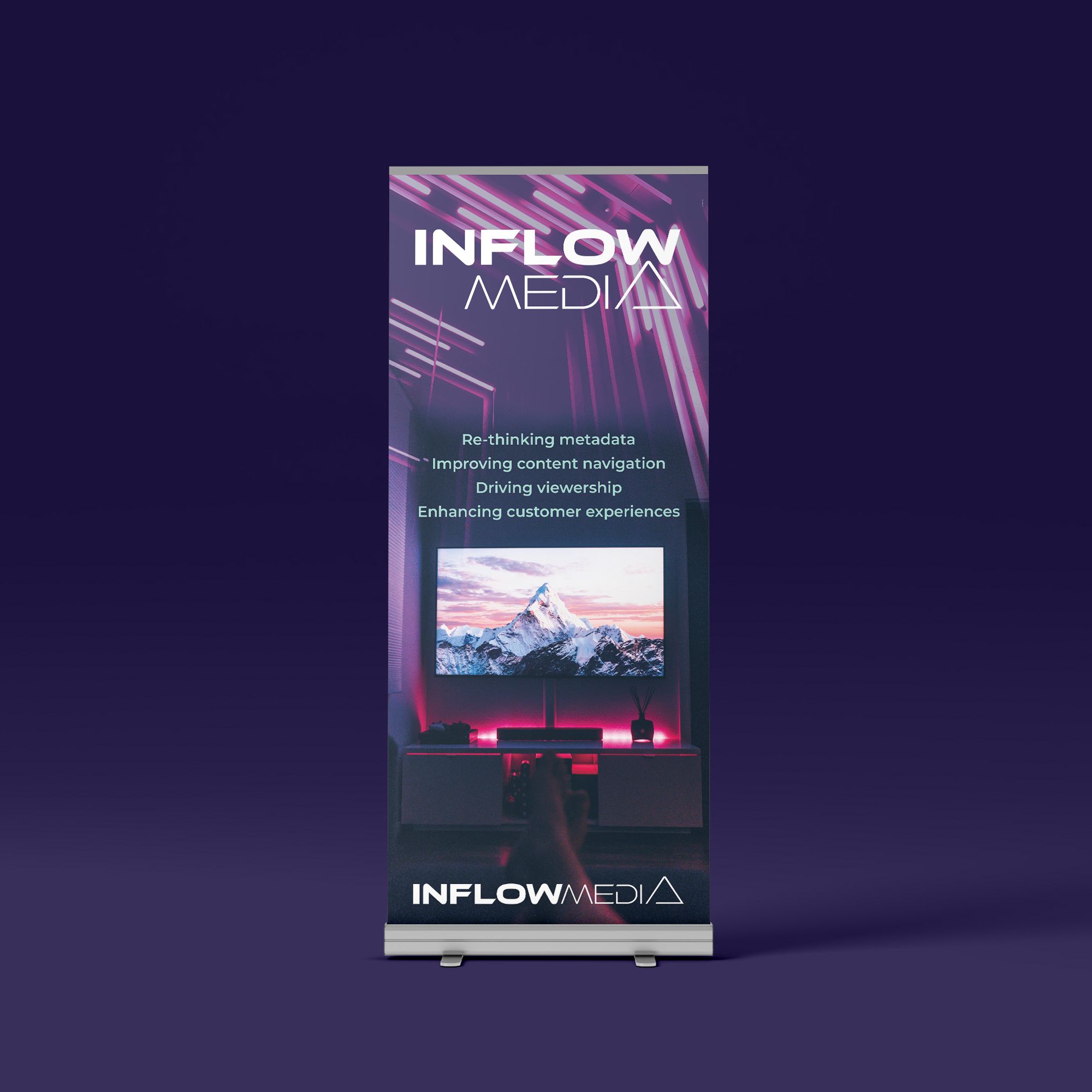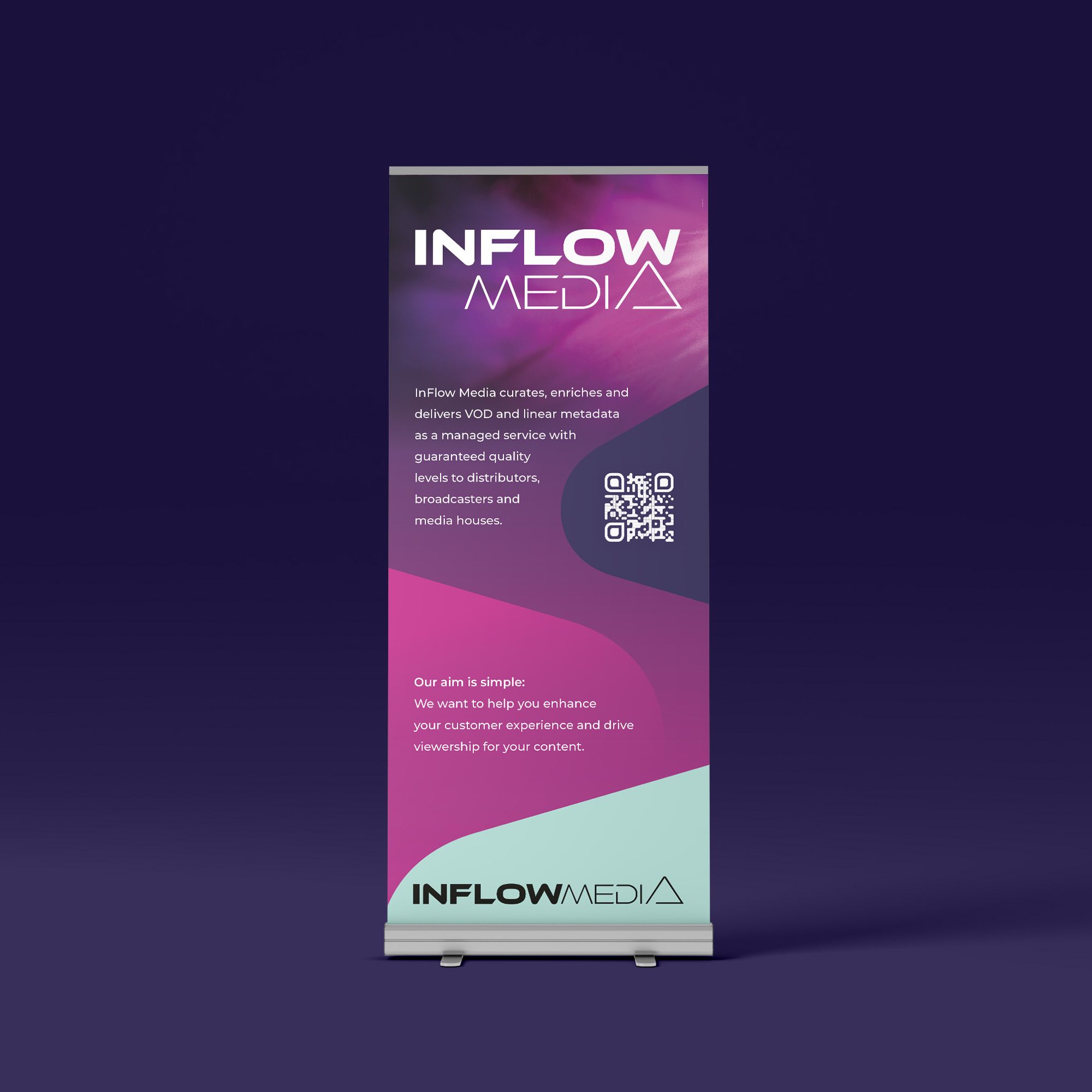 I dette prosjektet fekk Kristin utfordra den tekniske kreativiteten ved å utforme identiteten til bedrifta. Eit konsept, ein logo og tilhøyrande fargepalett blei levert. Resultatet blei ein futuristisk profil som framhevar både det tekniske og moderne som representerer InFlow Media.